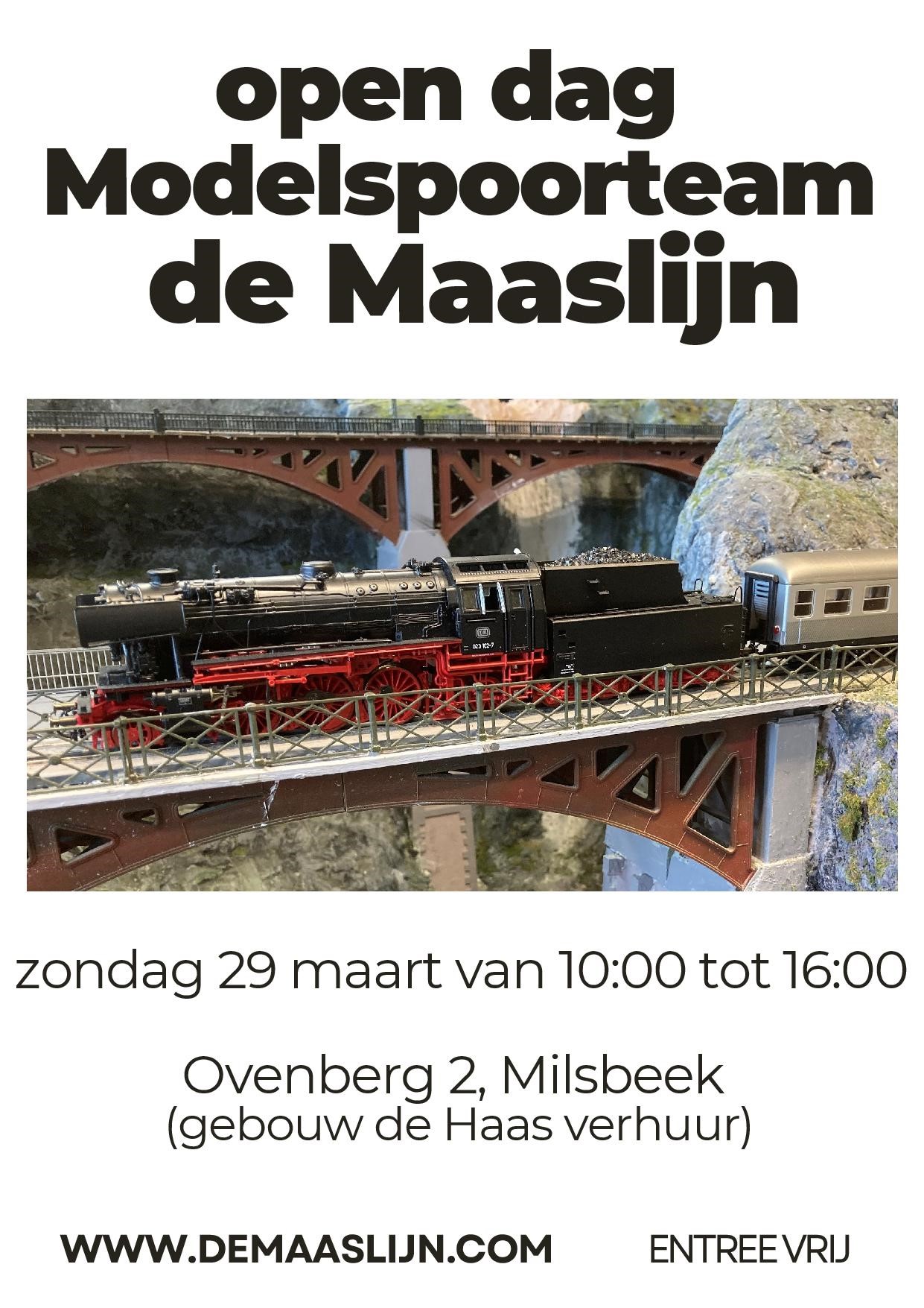 Op zondag 10 april aanstaande heeft modelspoorteamde Maaslijneen open dag met een treinenshow in Milsbeek ten zuiden van Nijmegen. Belooft een interessante dag te worden, waarin we laten zien hoe wij de modelspoorhobby beleven.